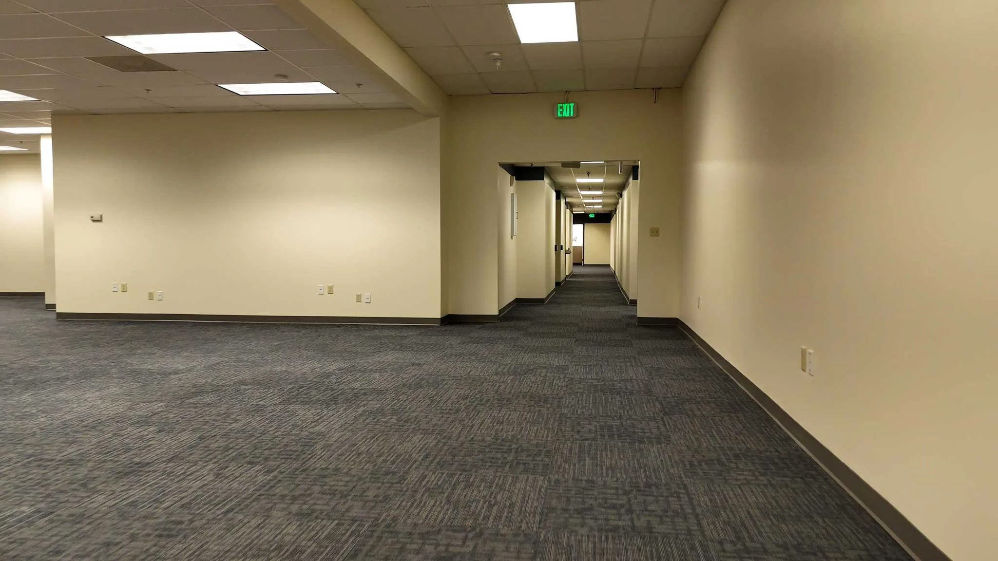 Formerly the L3Harris campus—a Department of Defense contractor—the property was purpose-built with security and performance in mind. Concrete wall construction and secured access points lend themselves to potential SCIF applications or other high-security uses. The interior buildout is equally robust, offering 54 hardwall offices, a large open office area designed for collaborative workflows, and an oversized breakroom capable of supporting a sizable workforce. This existing infrastructure allows for immediate occupancy while still providing flexibility for future reconfiguration.